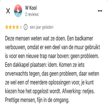 Bent u van plan uw woning te verbouwen, onderhouden of renoveren? Neem dan contact met ons op. Wij komen dan bij u langs om te kijken naar de situatie en te luisteren naar wat uw wensen zijn. Aan de hand daarvan wordt er een geheel vrijblijvende offerte opgesteld. Alle kosten worden in die offerte meegenomen, zodat u precies weet waar u aan toe bent.